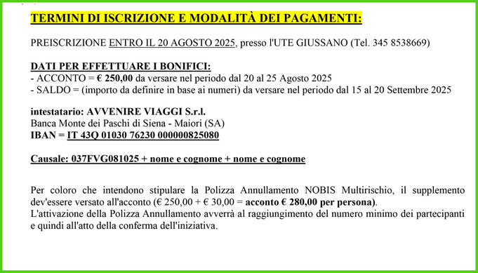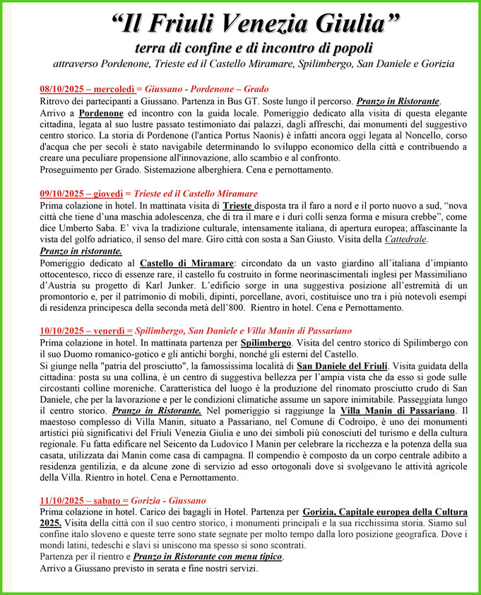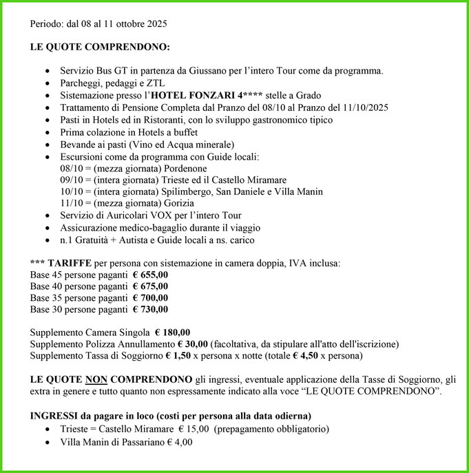 Si avvisano i partecipanti alla gita in Friuli che la partenza sarà alle ore 7 co l'Ufficio Postale di Giussano